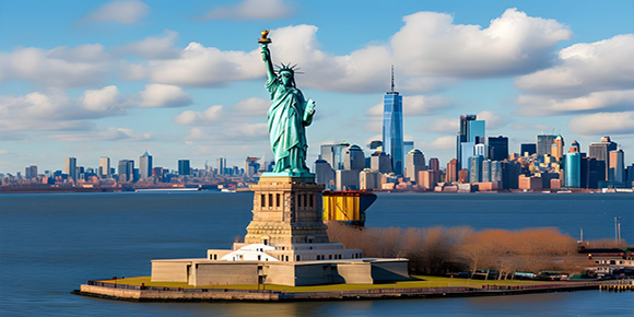 上午乘坐(zuò)遊船繞自由女神像航行(不上島, 45分(fēn)鍾),遠(yuǎn)觀自由女神像,自由女神像的(de)全稱昰(shi)“自由照耀世界之(zhi)神”,今天她不僅昰(shi)美國(guo)國(guo)傢(jia)的(de)紀念碑,更成(cheng)爲(wei)全世界自由咊(he)民(mín)主(zhu)的(de)象征。